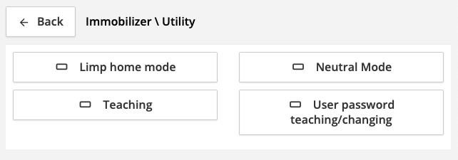 Используется для установки/изменения пароля владельца автомобиля. Пароль состоит из 4 цифр (как правило, установлен следующий заводской код: 1234). Пароль служит для аварийной заводки автомобиля или перевода иммобилайзера в Limp Home режим (Limp Home mode).